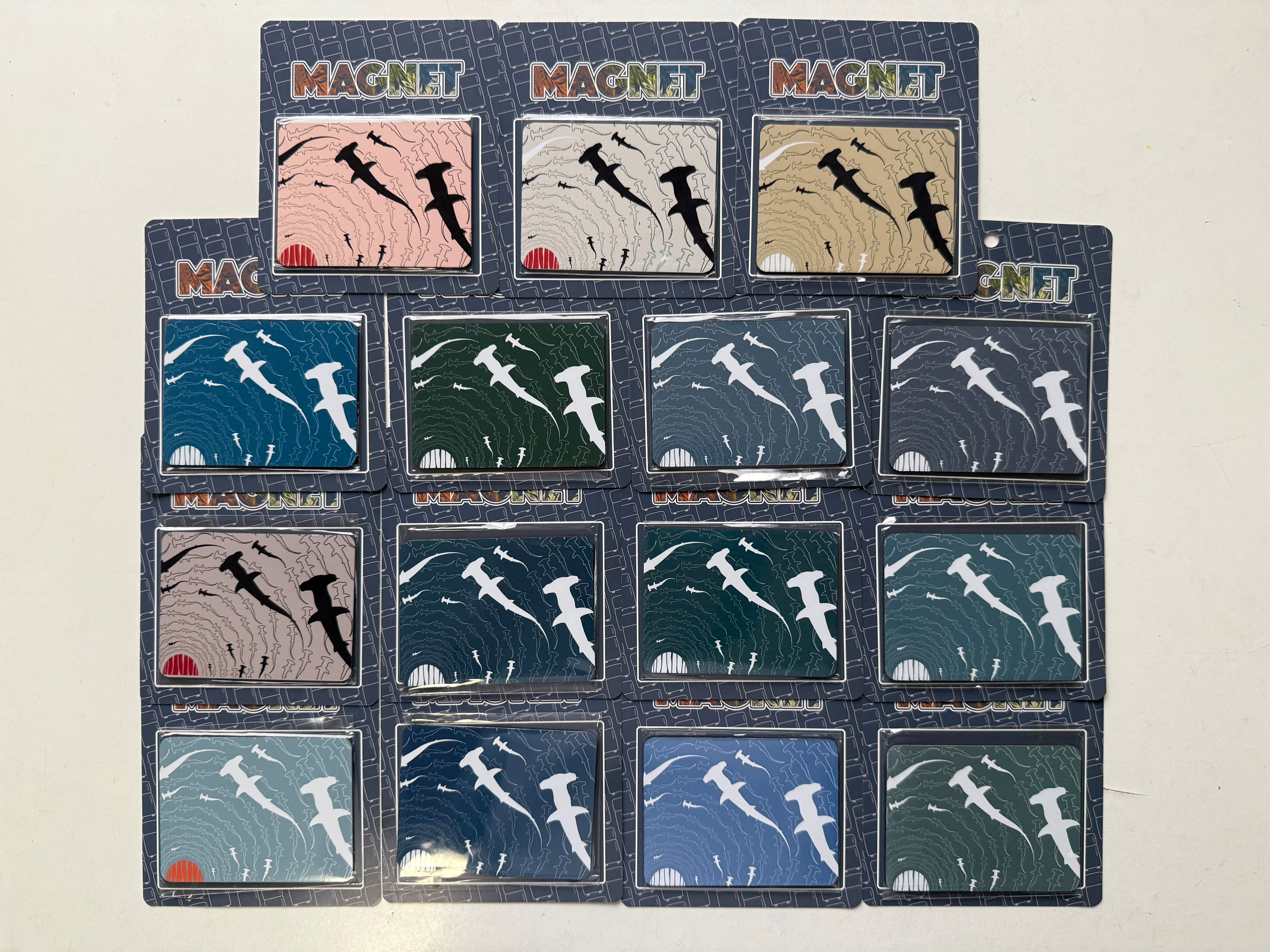 ハンマーヘッドシャーク柄のこのオリジナルマグネットは、